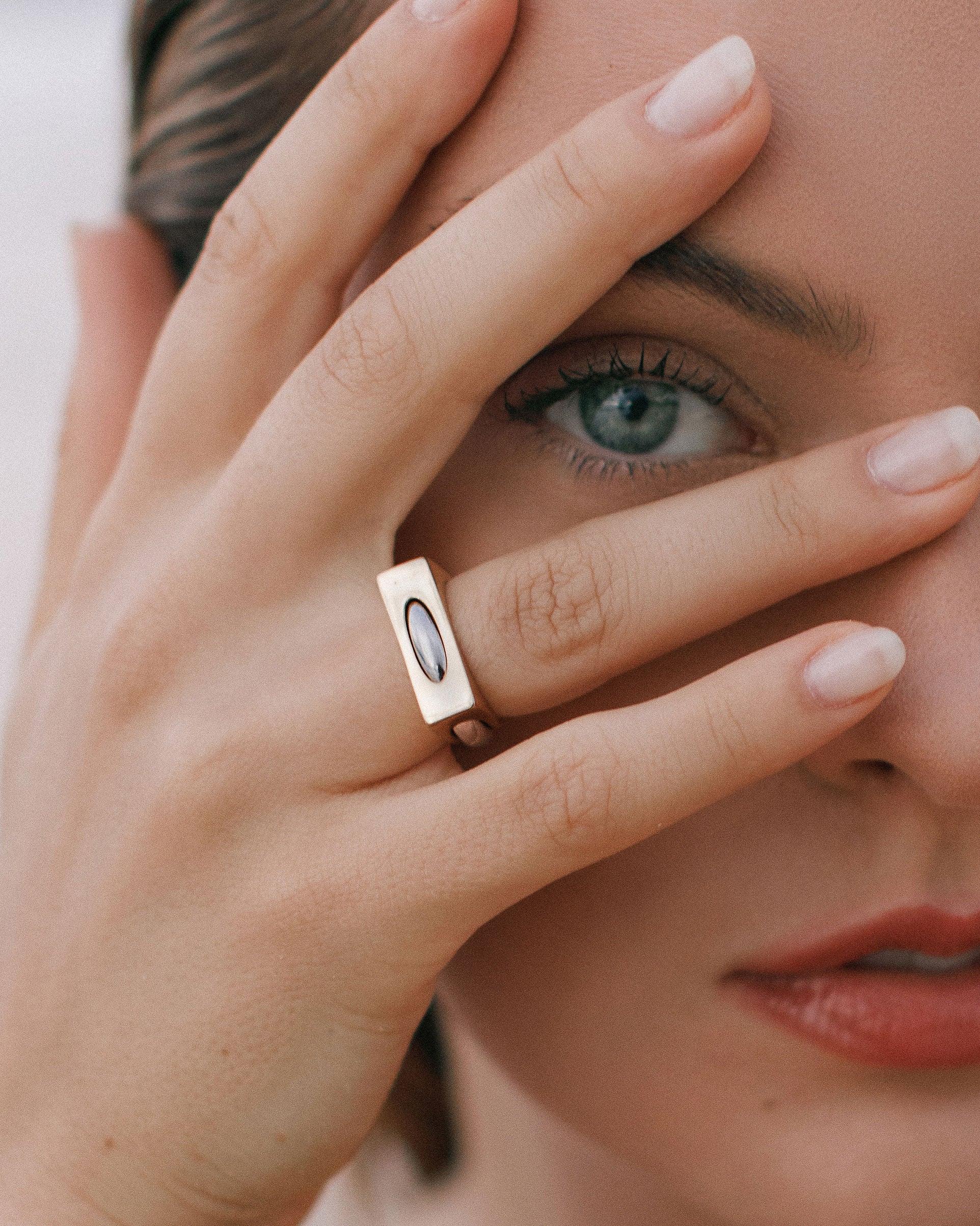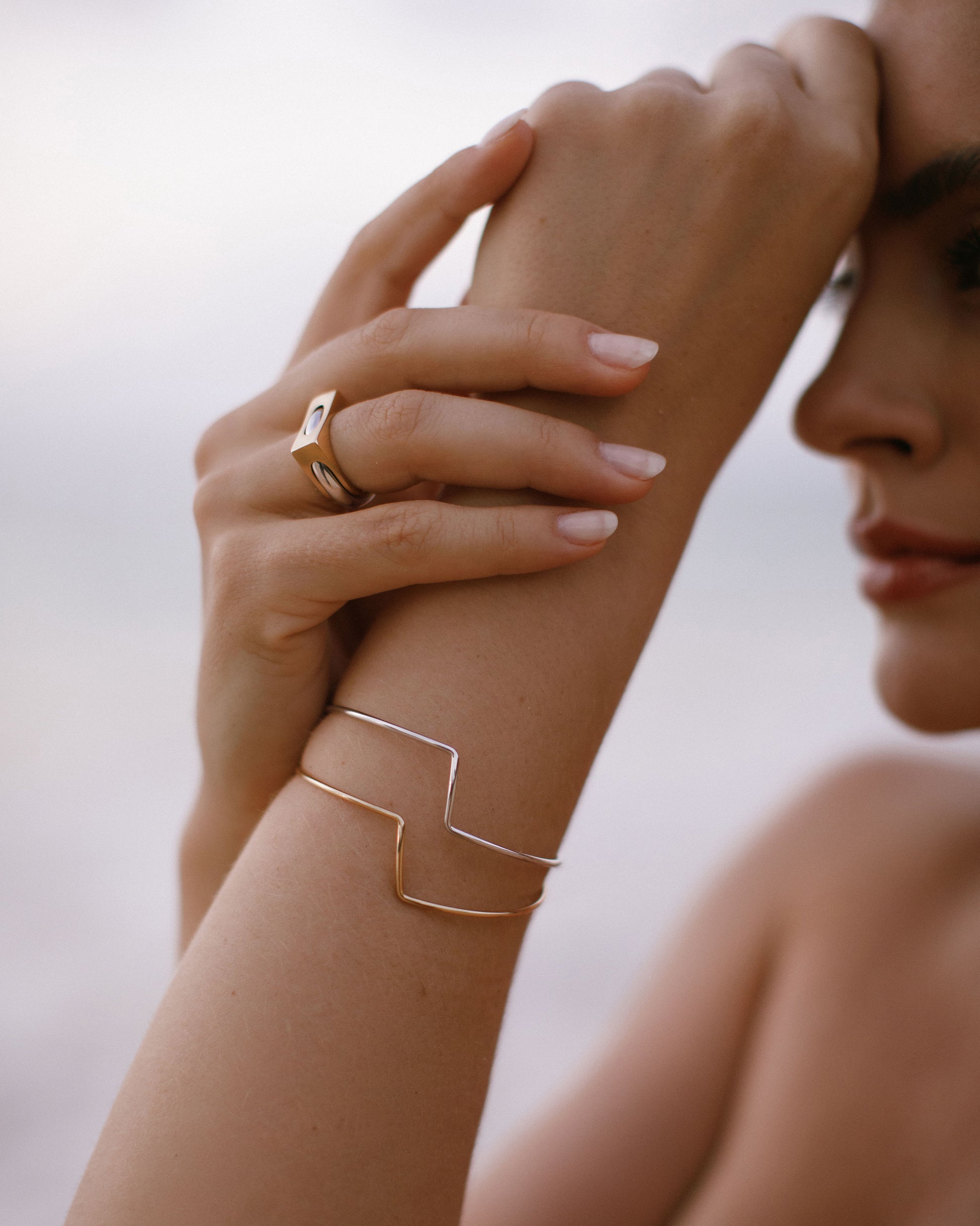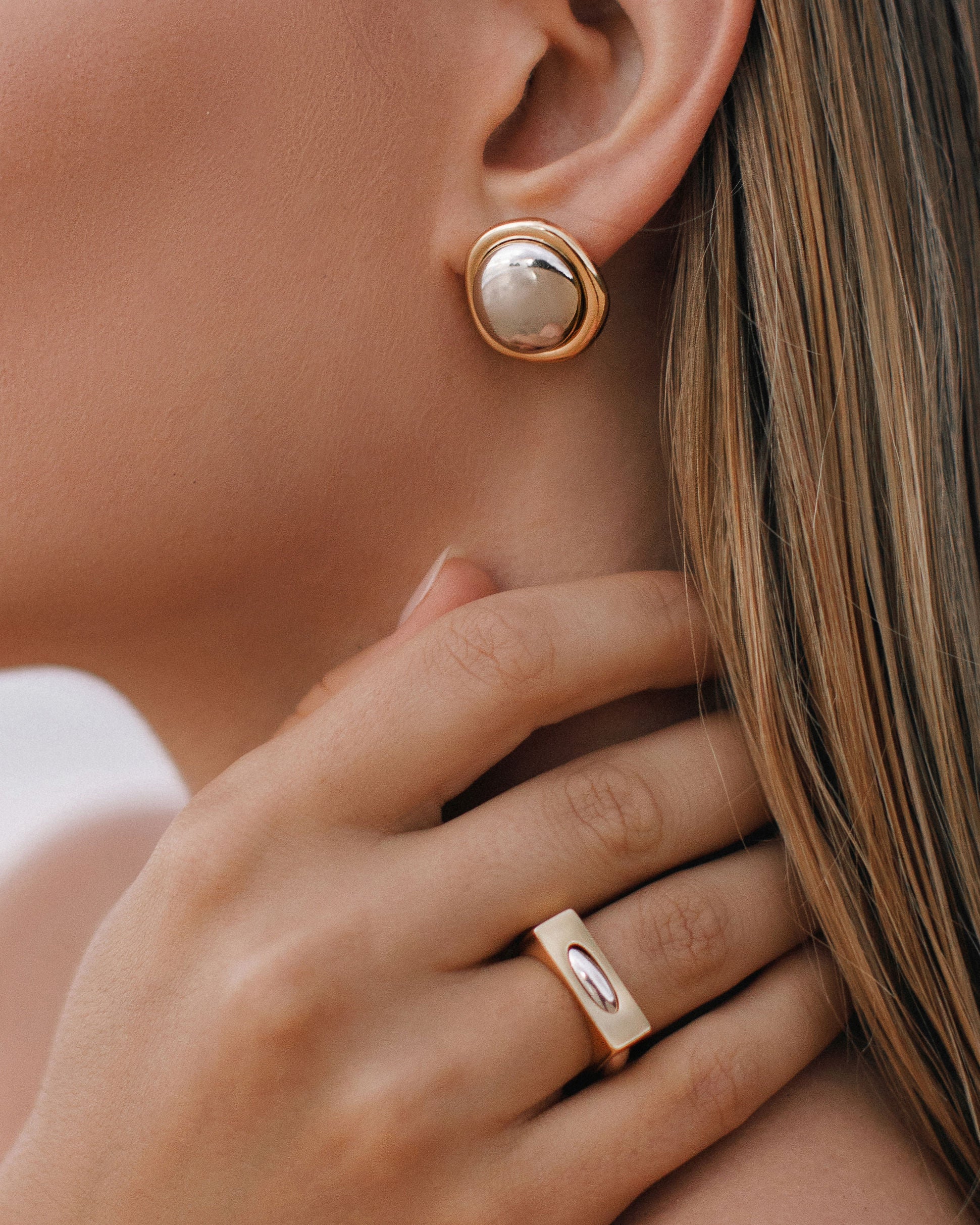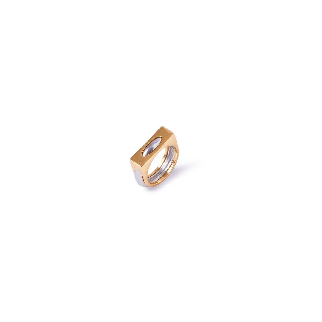 Anel em banho de ouro com anel em prata que se unem em uma única peça da nossa linha timeless